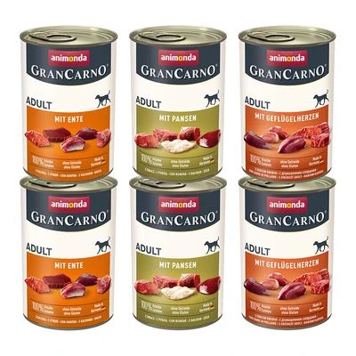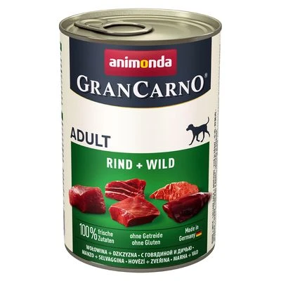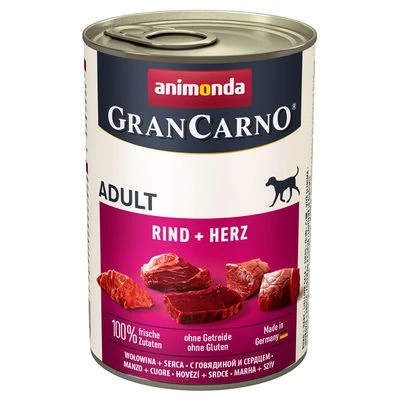 Afstammend van de wolf heeft het gedrag en uiterlijk van de hond zicht in 15.000 jaar dat hij samen leeft met de mens sterk veranderd. Zijn voedingsfysiologische behoeften naar dierlijke proteïnen blijft daarentegen hetzelfde. In Animonda GranCarno Original worden uitsluitend zorgvuldig gekozen, hoogwaardige vleessoorten, bestaand uit hart, long, lever en spiervlees verwerkt. De zorgvuldige en verse bereiding van ingrediënten zorgt daarbij voor behoud en optimale beschikbaarheid van voedingsstoffen. Zo blijft ook de natuurlijke structuur van het vlees behouden, een teken van versheid en natuurlijkheid. Ook de natuurlijke vleessmaak blijft daardoor behouden, wat voor de hoogste acceptatie zorgt. Van koolhydratenbronnen als granen of aardappelen wordt in de recepten geheel afgezien, ook wordt soja vermeden, en worden er geen smaakversterkers of kunstmatige kleurstoffen en conserveringsmiddelen toegevoegd. Met een speciale combinatie van verschillende antioxidanten wordt het immuunsysteem ondersteund en de weerstand verhoogd.