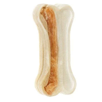 Een snack van vetarme runderhuid is ideaal om te voldoen aan de natuurlijke behoefte om te kauwen en knagen. De snack kan de kauwspieren van honden ondersteunen, de tanden reinigen en het tandvlees masseren. Mager kippenvlees levert voedzame eiwitten en is zeer geliefd onder honden.