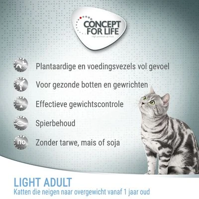 CONCEPT FOR LIFE Light Adult – op maat gemaakt voor katten met overgewicht of een neiging tot overgewicht vanaf 1 jaar oud: