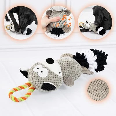 Pluche hondenspeelgoed voor honden van middelgrote en grote rassen, vriendelijke wasbeer, met pieper, vast touw om aan te trekken, ook ideaal voor gooien, kauwen en apporteren, gemaakt van polyester