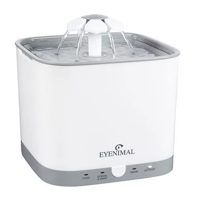 De Smart Bloom Fountain van Eyenimal is een moderne drinkfontein voor katten en kleine honden. Twee verschillende opzetstukjes zorgen voor afwisseling en maken het drinken voor je viervoeter tot een bijzondere belevenis. Het bloemvormige-opzetstuk is niet alleen decoratief in je woning, maar zorgt ook voor meerdere watervalletjes die stimulerend kabbelen in huis.
