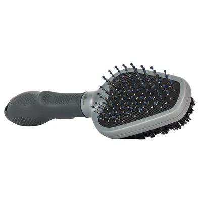 Professionele plukborstel voor de vachtverzorging van honden. Verwijdert klitten en maakt de vacht mooier. Grote dubbelzijdige flex-borstelkop van rvs en antimicrobiële kunststof.