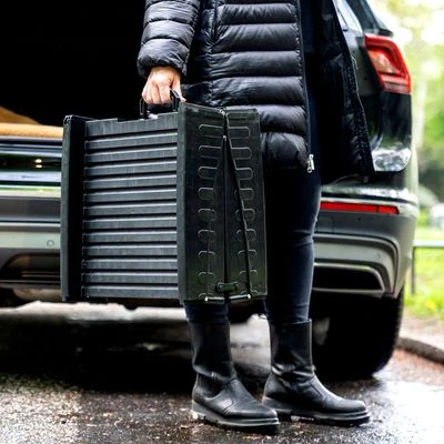 De loopplank heeft een slipvrij, geprofileerd loopvlak en is voorzien van een randverhoging aan de zijkanten. Gekartelde steunpunten geven de loopplank een goede grip. Dankzij het lage eigen gewicht en de praktische draaggreep is de loopplank gemakkelijk te vervoeren. Met een paar eenvoudige stappen is de loopplank opvouwbaar tot kofferformaat en dus gemakkelijk op te bergen in de auto.