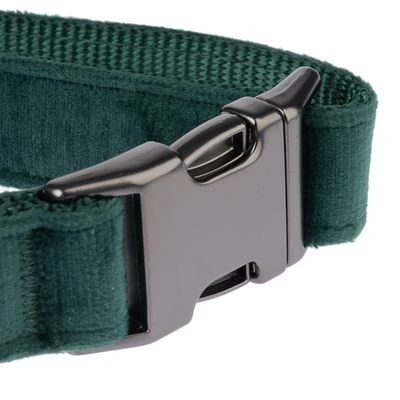 Traploos verstelbare halsband voor honden, in elegante fluwelen look, met grote D-ring, weerbestendig en robuust, leuke details, met drukknoop, gemaakt van polyester en nylon, kleur: groen.