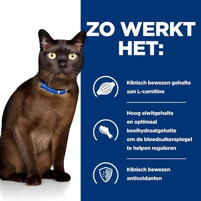 Hill’s Prescription Diet Feline m/d is speciaal ontwikkeld ter de behandeling van overgewicht en corpulentie bij katten met diabetes.