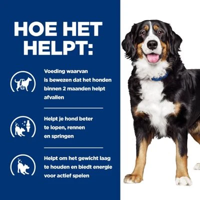 - Compleet dieetvoer ter vermindering van overgewicht en ter ondersteuning van het gewrichtsmetabolisme bij artrose voor volwassen honden