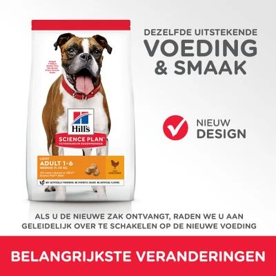 Hill’s Science Plan Adult Light Kip hondenvoer voor honden met minder calorie-verbruik bijv. voor minder actieve, gecastreerde honden of honden die om andere redenen tot overgewicht neigen, met L-carnitine