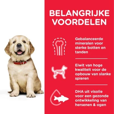 Hill’s Canine Puppy Large Breed hondenvoer voor puppy’s van grote rassen (>25 kg), weinig vetten & calorieën voor de gelijkmatige & gezonde groei, perfecte hoeveelheid calcium voor de gezonde botgroei