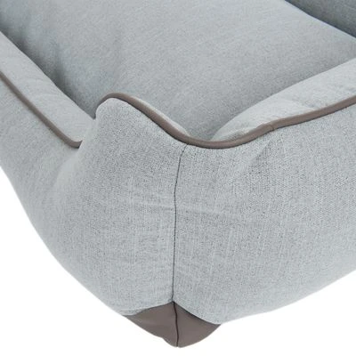 Hondenbed voor middelgrote tot grote rassen. Dikke vulling van memory foam. Zeer comfortabel & ontlast de gewrichten. Hoge rand om tegenaan te leunen. Verlaagde opening. Kleur: grijsblauw