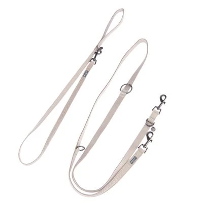 De hondenriem Nomad Tales Blush kenmerkt zich door een uitstekende weerstand zonder in te boeten aan stijl, een elegante taupe kleur met een glad materiaal en fluweelzacht oppervlak Hij is verkrijgbaar in twee varianten: 200 cm en verstelbaar of 120 cm met praktische handlus. Om een mooie look voor je hond te creëren, kun je de riem ook combineren met de bijpassende halsband of tuigje.