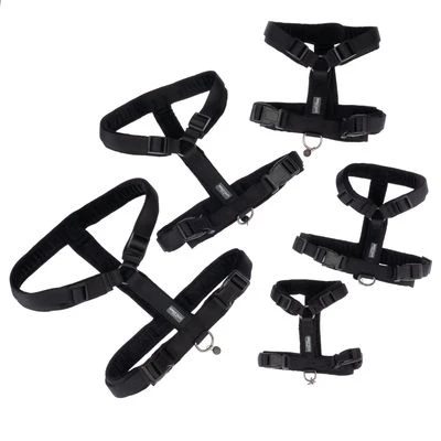 Modieus hondentuig, traploos verstelbaar & lichtgewicht, zeer goede pasvorm en volledige bewegingsvrijheid, fluweelachtig glanzende look, machinewasbaar, gemaakt van polyester & nylon, kleur: zwart.