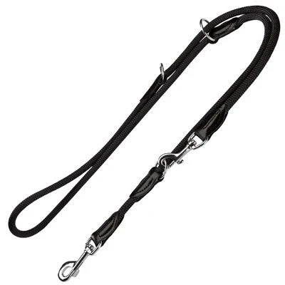 Een Hunter hondenlijn die zeer sterk en stevig is, 3-voudig verstelbaar en gemakkelijk te onderhouden. De kleur van de hondenlijn is zwart met doorgestikte leren afzetting.