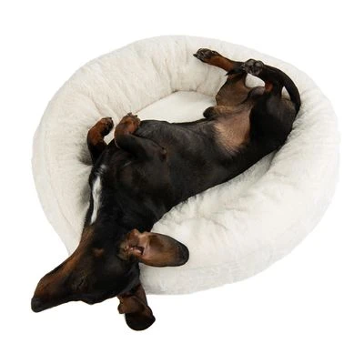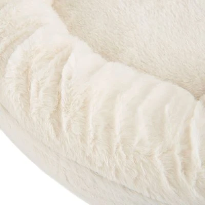 Extra zachte kattenmand voor katten & kleine honden. Groot, rond ligvlak. Gemaakt van hoogwaardig pluche. Vlakke rand. Vormvast met geïntegreerd kussen. Volledig machinewasbaar, Kleur: wit.