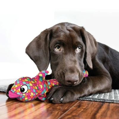 Speelgoed in de vorm van een vis voor kleine tot große honden. Twee piepende ballen binnenin. Lange staarten om te schudden en te trekken. Voor werp- en apporteerspelletjes. Van vinyl & polyester.