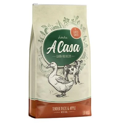 De maaltijd Lukullus A Casa Tender Duck & Apple (malse eend en appel) is gemaakt van mals, vers eendenvlees en sappig kalfsvlees, samen met inheemse superfoods: appel, erwten en vlierbessen. Bovendien ronden zalm- en olijfolie, als natuurlijke bron van omega 3- en 6-vetzuren, de receptuur af. De graanvrije brokken worden langzaam en zorgvuldig gebakken. Zo blijven de inheemse inhouds- en smaakstoffen behouden. De natuurlijke en veelzijdige receptuur voorziet je hond van alle essentiële voedingsstoffen. Aangezien Lukullus A Casa knapperig gebakken wordt, naar rozemarijn ruikt en zichtbare stukjes pastinaak en kruiden bevat, is het een maaltijd zoals je die thuis met veel liefde bereidt.