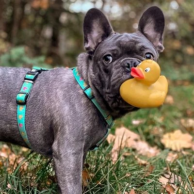 Sterk hondentuig met schattige eendenprint. Verstelbaar op 4 plekken. Ideaal voor de groei. Dubbellaagse constructie. Stevige Power Klik-sluitingen. Van neopreen & polyester.