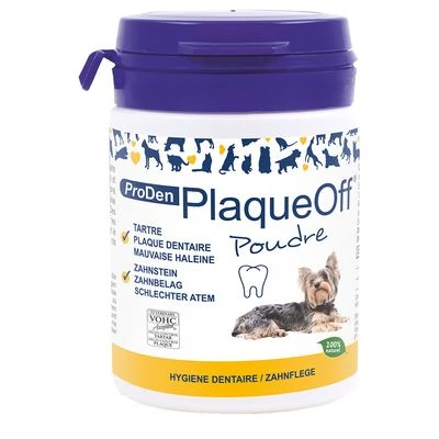 PlaqueOff Animal heeft zich zowel bewezen als preventief middel maar ook als middel ter behandeling van tandsteen en slechte adem. Dagelijks consequent gebruikt, wordt de bestaande tandsteen na enige tijd (al naar toestand) lichter en kan dan relatief makkelijk met een haak worden weg gekrabd.