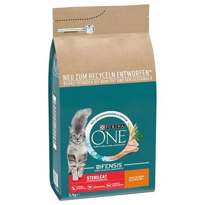Purina ONE Sterilcat bevat kip als eerste ingrediënt, wat een bron van hoogwaardige eiwitten is en ook bijdraagt aan de heerlijke smaak van de voeding. Het recept bevat alle voedingsstoffen en vitale stoffen die nodig zijn voor de dagelijkse voeding van je kleine vriend. Goed om te weten: De complete Purina ONE voeding is verkrijgbaar in een recyclebare zak met versheidssluiting.
