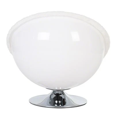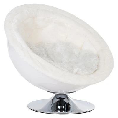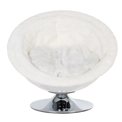 Acryl-retro-stoel in loungestijl van de jaren 70 met verchroomde standvoet en groot, gezellig ligvlak, ook ideaal geschikt voor grote kattenrassen en kleine honden. Kleur: wit.