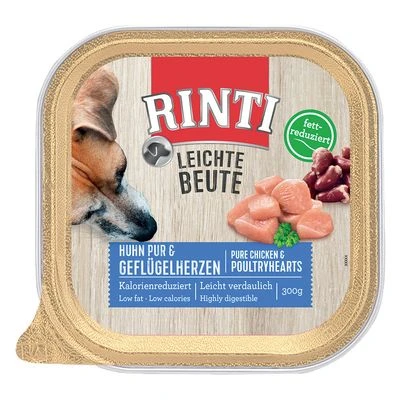 RINTI Lichte Buit is een caloriearm compleet natvoer voor honden, met een vetarme en licht verteerbare samenstelling. Het is rijk aan magere kip, heeft een heerlijke smaak en beschikbaar in verschillende variaties.