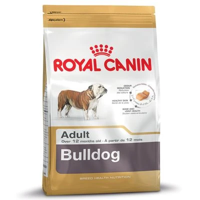 De Engelse Bulldog is een rustige en evenwichtige familiehond en een fijn gezelschap met een hart van goud. De bulldog heeft smalle luchtwegen, veroorzaakt door de unieke hoofdvorm met kort gelaat en onderbeet (brachycephale type). De problemen met ademhalen, die met smalle luchtwegen zijn verbonden, kunnen invloed hebben op de spijsvertering. Ook het opnemen van voedsel door de bijzondere hoofdvorm wordt lastig. De bulldog heeft een huid vol plooien, welke warmt en vocht vast kunnen houden. Dankzij zijn lichaamsbouw heeft hij neigingen tot gevoelige gewrichten, die moeten worden beschermd. Royal Canin Breed Bulldog hondendroogvoer houdt rekening met deze bijzonderheden van de volwassen Engelse bulldoggen vanaf 12 maanden: