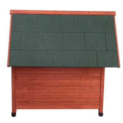 Het voorgeöliede hout zorgt ervoor dat hondenhok Spike Comfort een weer- en wintervast domicilie wordt. Door de brede dakoverstek wordt uw viervoeter optimaal beschermd tegen regen en tocht. Verder zorgen de dakbitumen en de houten daklijsten voor bescherming tegen het weer.