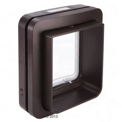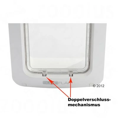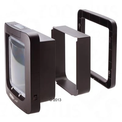 Extra groot microchip huisdierluik met dubbele vergrendeling en programmeerbare in- en uitgangsversperring. Het luik heeft 4 sluitmogelijkheden en kan worden geopend met microchip & halsbandsleutel.
