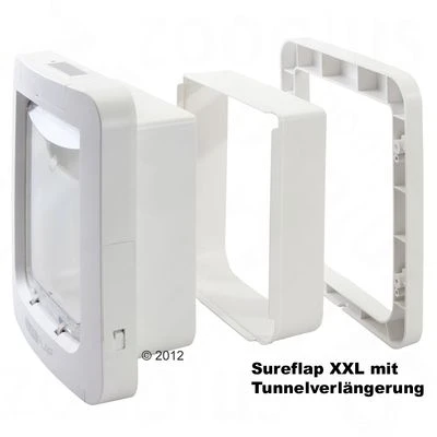 Installeren van het Sureflap Microchip huisdierluik kan in alle muren of deuren. Voor extra montage opties zijn tunnelverlengingen en een montageadapter voor inbouw in ruiten verkrijgbaar. Mocht je op zoek zijn naar exacte aanwijzingen voor de inbouw in deuren of muren uit verschillende materialen, dan vind je deze in de gebruiksaanwijzing. Mocht je het luik willen installeren in een deur die een metalen plaat bevat, lees dat de instructies in de handleiding extra goed, omdat metaal het vermogen van de sensor om de chip van je huisdier te lezen zou kunnen verminderen. Dit komt enkel niet voor wanneer je hebt luik correct hebt geïnstalleerd, dus nogmaals, wees er zeker van dat je de instructies juist volgt. Voor installeren in glas is de montageadapter nodig.