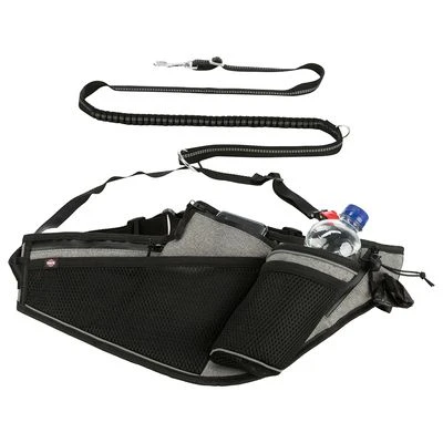 Speciale jogginggordel om met je hond te wandelen of joggen. Met lijn met polsband. Verstelbare heupriem met lijnhouder. Bevat meerdere vakken en een fleshouder. Hoog draagcomfort. Van polyester.