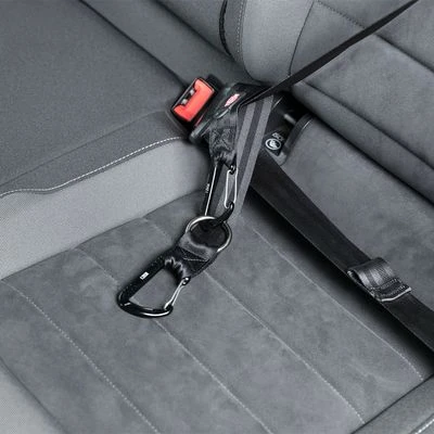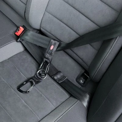 Sterke gordel voor het vastzetten van honden in de auto. Meerdere manieren voor bevestiging aan de autogordel dankzij metalen ring & karabijnhaak. Voor alle voertuigen. Kleur: zwart.Â