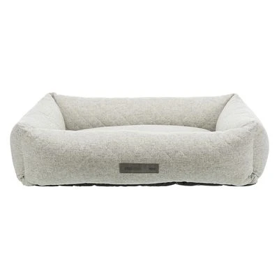 Hoogwaardige, orthopedische lichtgrijze hondenmand. Met stevig geïntegreerd kussen & ligvlak met traagschuim. Dikke gevoerde rand. Gewatteerde & machine-wasbare hoes. Hoog comfort.