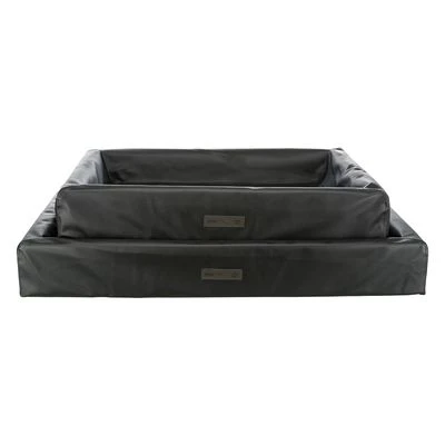 Onderhoudsvriendelijke, orthopedische mand voor honden. Ligvlak met traagschuim ter ontlasting van de gewrichten. Hoog comfort. Gevoerde rand. Afneembare hoes van kunstleer. Antislip. Kleur: zwart.