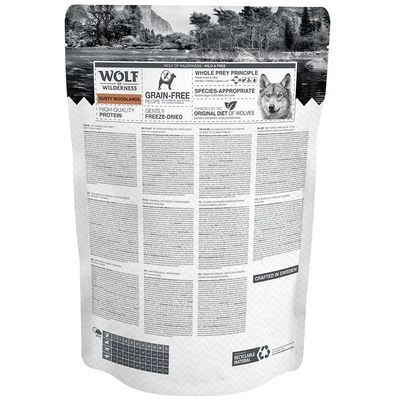 - Wild & puur: verrijkt met bosbessen, wortels en wilde kruiden.