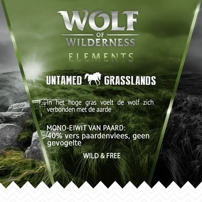 Het droogvoer Wolf of Wilderness Untamed Grasslands Paard blinkt uit door:
